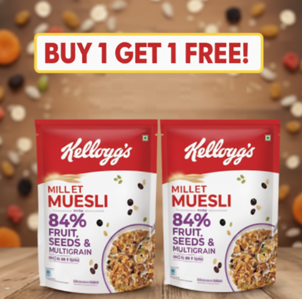 Packed with Millet Power: 'New Kellogg's Millet Muesli with 84% Fruit, Seed & Multigrain' comes with the goodness of 5 baked grains including Ragi, Barley, Wheat, Corn & Rice, this Muesli provides sustained energy for your busy mornings.